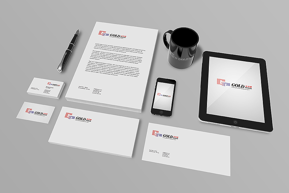 标志设计当中采用黑、灰、金的色彩来表现产品的科技感,硬朗的线条透出金属的质感和厚重,风格简洁而不轻佻,高端而不浮夸。